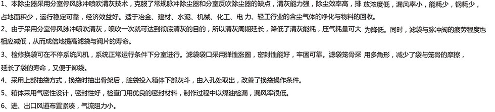 | 过滤风速m/min | 1.0-1.50 | 1.0-1.50 | 1.0-1.50 | 1.10-1.70 | 1.20-1.70 | 1.20-1.80 | |