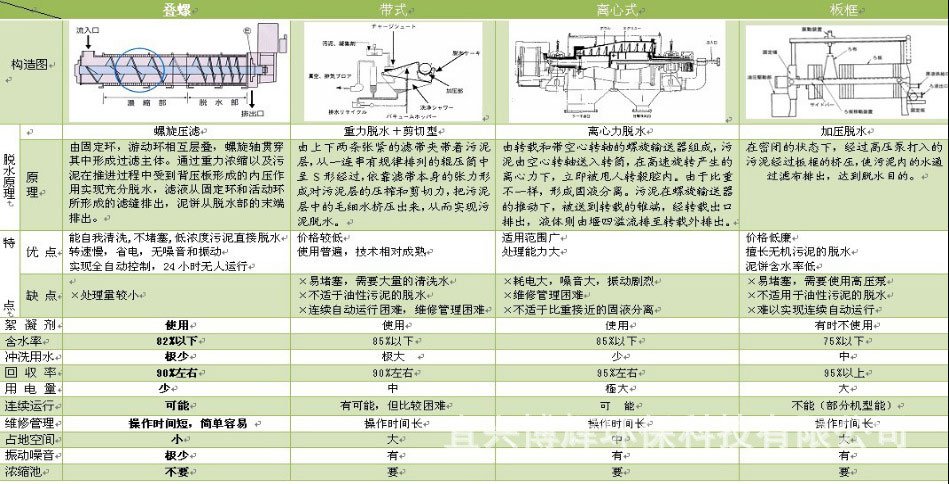 各类型脱水机对比参考