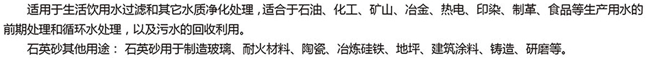 3、可用作离子交换法软化、除盐系统中的预处理设备,对水质要求不高的工业给水的粗过滤设备;以及用在游泳池循环处理系统、冷却循环水净化系统等。