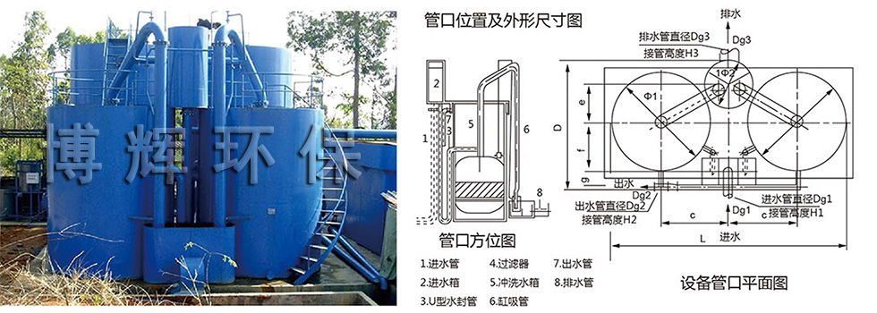 重力式无阀过滤器进水、出水、冲洗及排水不用阀门,靠水力作用自动运行,运行费用低,管理方便,安全可靠,运行自动化,设备一体化,进水箱、过滤器、反冲洗水箱等组装一体,结构紧凑,用户只需按要求做设备基础和接通进出水管即可投入运行。同时,过滤器均装有顶盖,卫生防护条件好,可以露天设置,与钢筋混凝土滤池相比自重小,可采用沥青砂柔性基础。