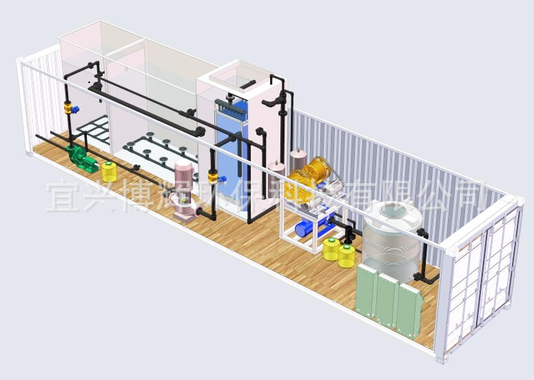 BH-JZ型集装箱式一体化污水处理设备是3044am永利集团环保科技生产的一种污水处理设备,它采用中空纤维膜生物反应器(MBR)技术,将膜分离技术、生物处理技术、智能化控制技术有机结合,整套设备经优化集成后布置在集装箱体内,具有安装快捷、移动方便、处理效果好、占地面积小、运行维护简单等特点。出水可达到《城市杂用水水质》GB/T18920-2002及《景观环境用水水质》GB/T18921-2002,即可达到国家高的《城镇污水处理厂排放标准》GB/T 18920-2002一级B(或一级A)标准,可直接排放或回用。