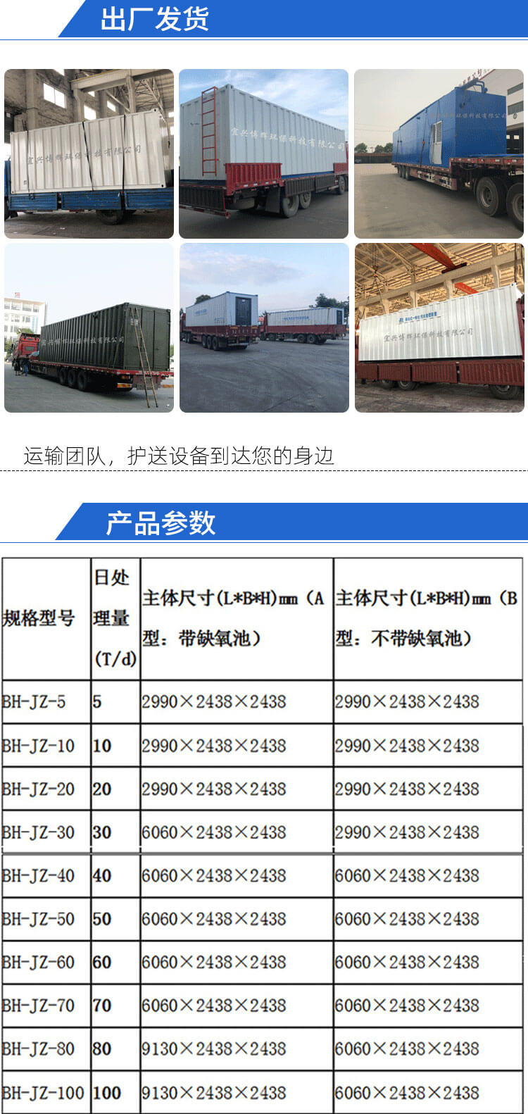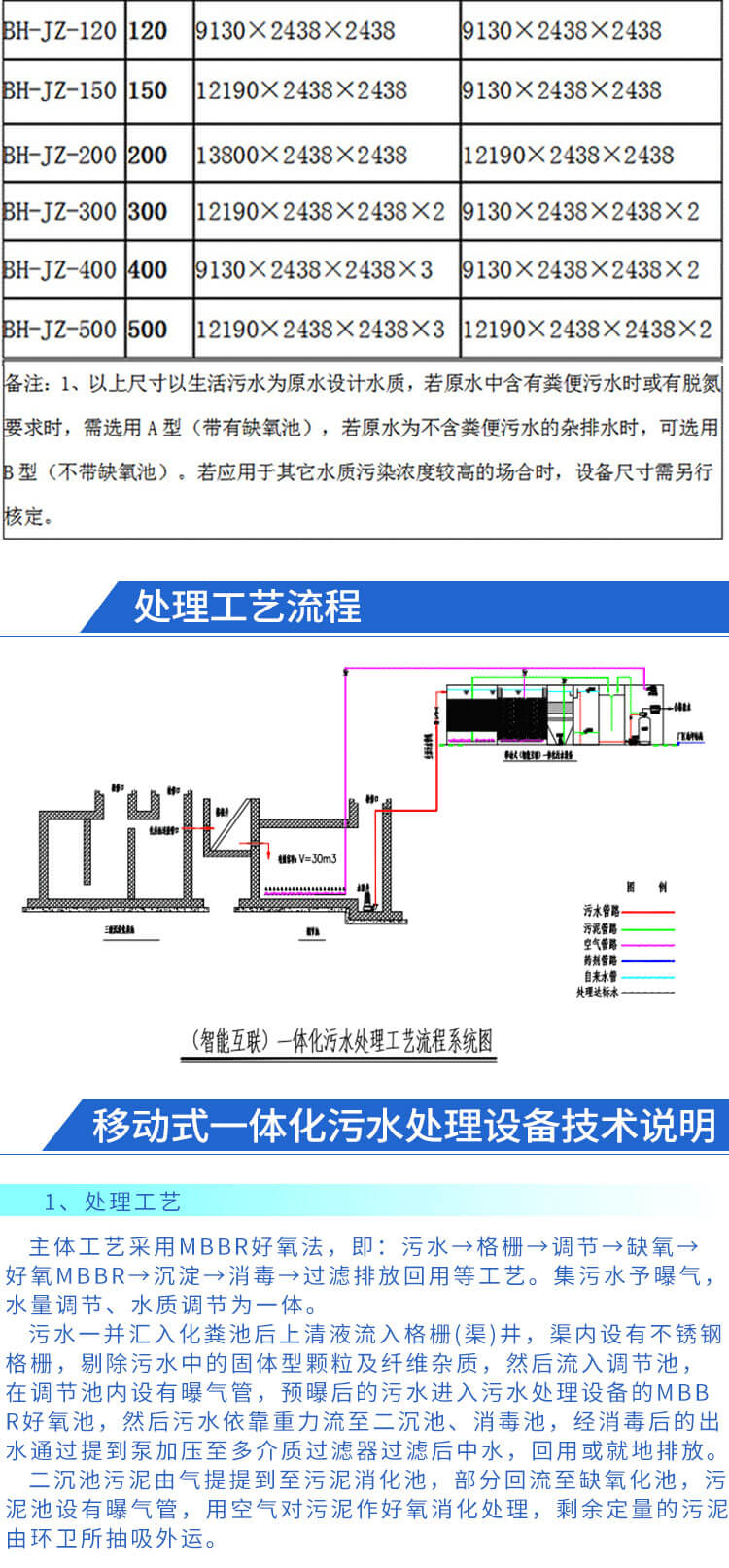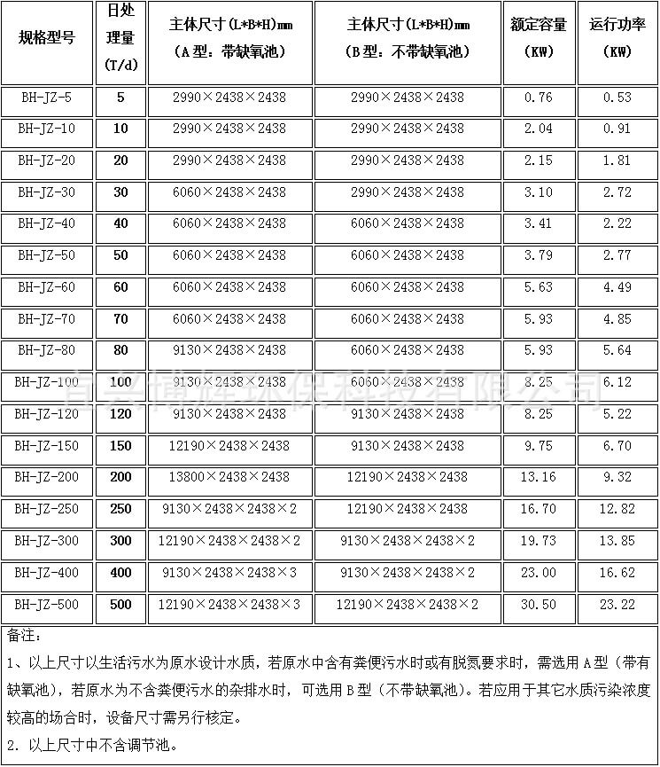 七、BH-JZ一体化污水处理设备主要规格参数表;